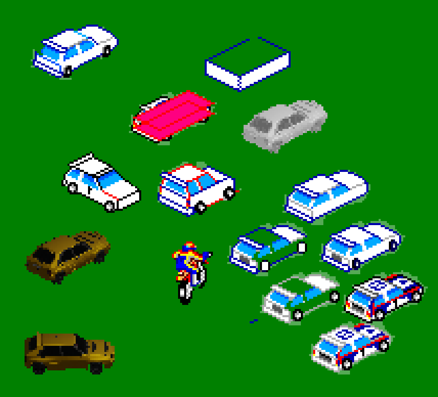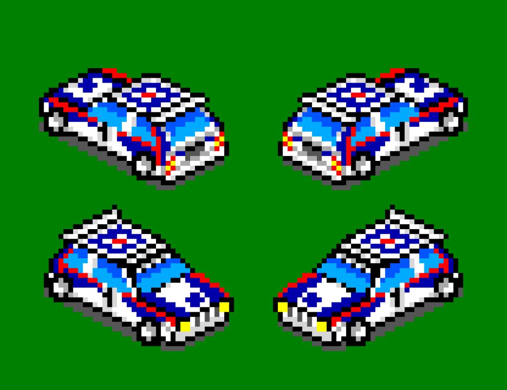 Actual progress today. This time I used the render of the rally car as a base to get the correct proportions when drawing the sprites by hand.