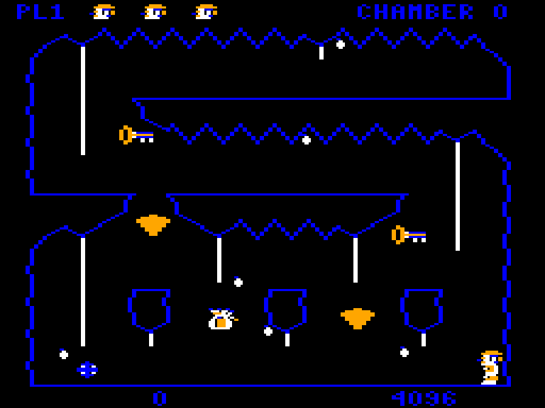The first thing that struck me about the ball behavior is that no matter what room it appears in, it always spawns in the exact same spot. It spawns at X=101 and Y=116 in logical game space, appearing at X=202 in screen space. I never realized this playing the game, even after all these years. Props to Mr. Aichlmayr for making the chambers’ geometry varied enough to mask that fact.