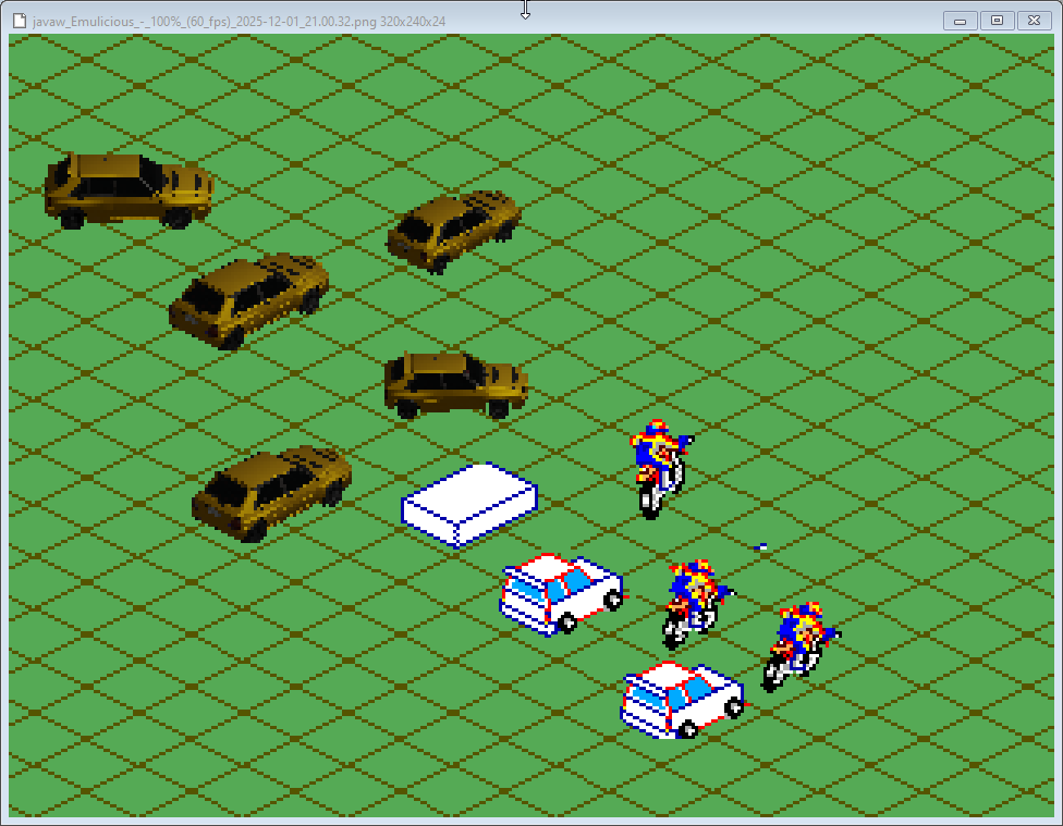 Here’s a capture of a hacked version of Downland_C simulating the player and the ball being placed every pixel instead of every two: