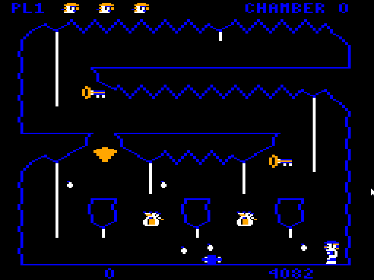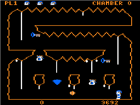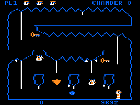 Without color, Downland’s iconic bouncing enemy of doom is finally revealed to be just a killer walnut.
