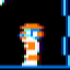 If you stare at the player sprite too long, you start to notice that he’s got blue AND orange hair and you can’t tell what the orange and blue parts of his face are supposed to be. Is that a blue eye at the lower half of his face? He has identically sized mustache and eyebrows? Also, he has ridiculously long arms and his shirt either has a single button or he’s just showing off his nipples. It’s hard to tell as this resolution. And who knows what the white pixel under his hand is supposed to represent!